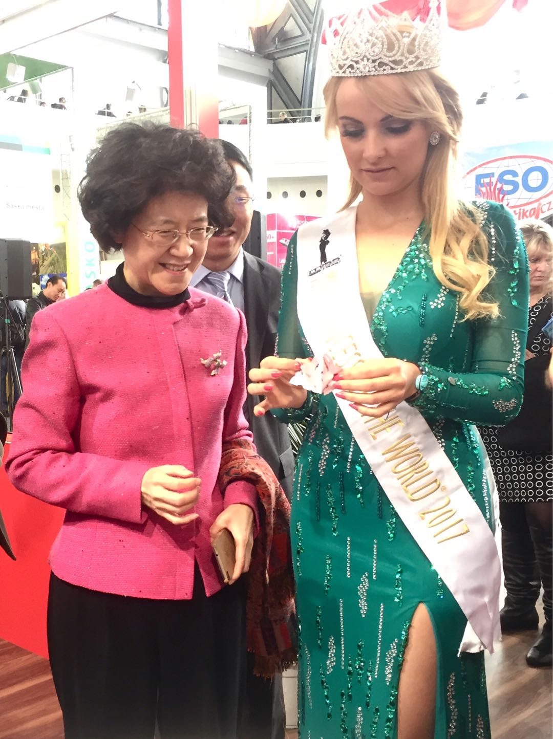 當地時間2月15日,在捷克首都布拉格展覽中心,愛濤文化集團“歡樂春節·精彩江蘇”文化藝術展演團為第27屆捷克“假日世界”國際旅游交易會助力展演。駐捷大使馬克卿女士、捷克地方發展部部長多斯塔洛娃女士、江蘇省文化廳副廳長劉愛華、江蘇省文化廳對外交流處副處長周云鳳蒞臨中國展位,愛濤文化集團總經理陳云梅向來賓介紹了愛濤文化集團“歡樂春節·精彩江蘇”文化藝術展演團為本次旅游交易會精心準備的展演節目。