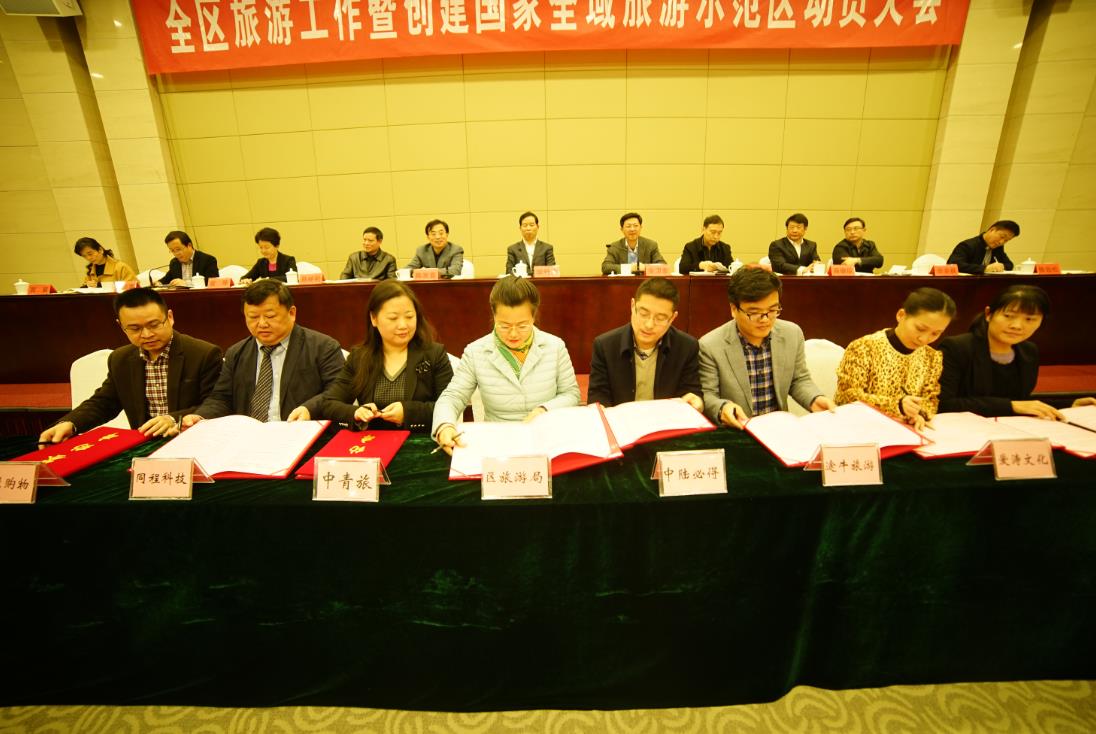 2月26日下午,江寧區全區旅游工作暨創建“國家全域旅游示范區”動員大會隆重召開,區四套班子主要領導、省市旅游主管部門領導出席,區委、區政府各部門主要負責同志,駐區高校分管領導,旅游企業負責同志等近200人參加會議。會上,江寧區旅游局與江蘇愛濤文化產業有限公司等單位簽署了“互聯網+目的地”戰略合作協議,多方旅游機構將攜手共同推進江寧區的“國家全域旅游示范區”創建進程。