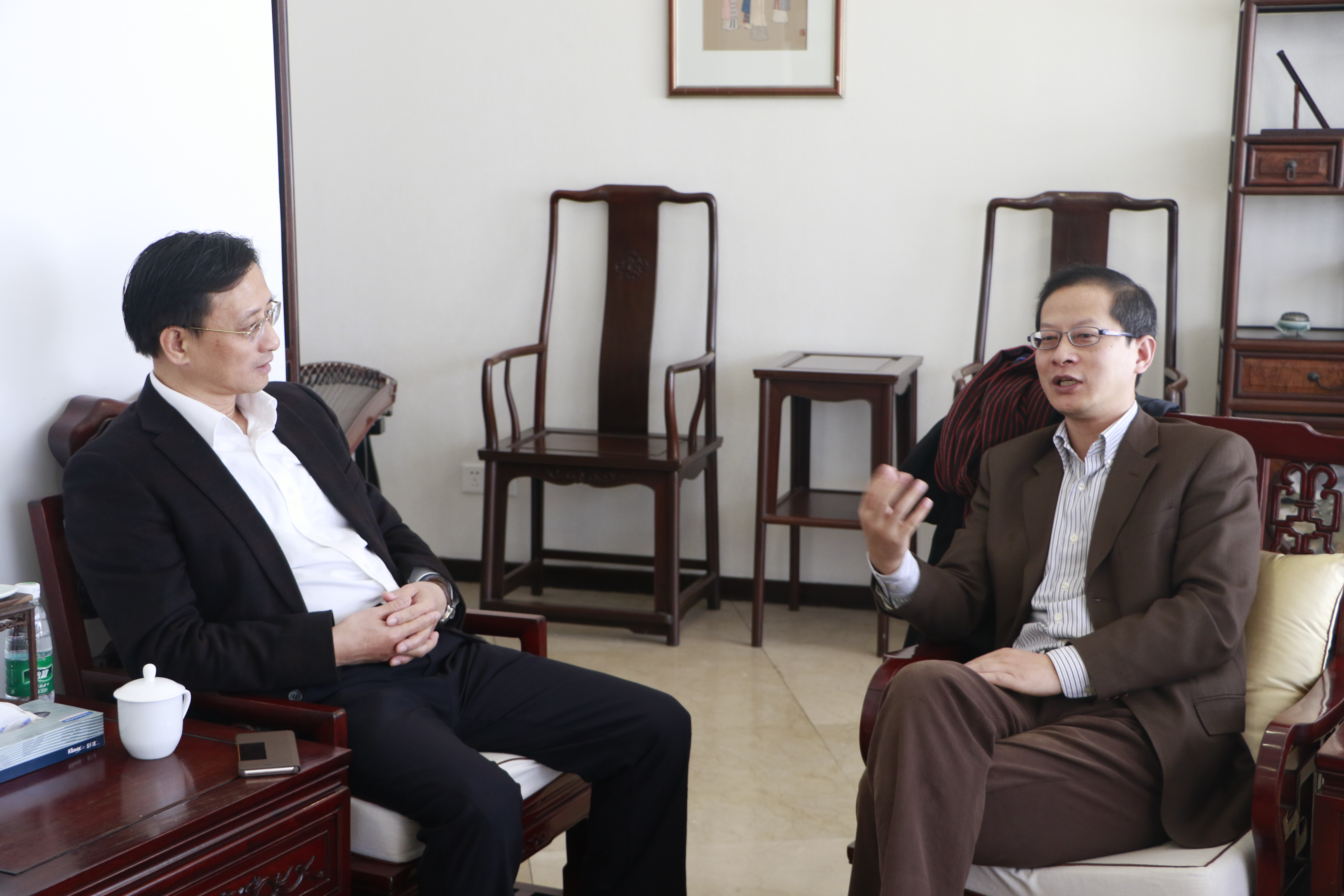 2016年11月11日上午,文化部外聯(lián)局局長助理鄭浩、江蘇省文化廳對外文化交流處處長官天濤一行蒞臨愛濤文化藝術(shù)中心指導(dǎo)工作。蘇豪控股集團(tuán)副總裁李結(jié)祥、愛濤文化集團(tuán)常務(wù)副總陳云梅接待并參與座談會。