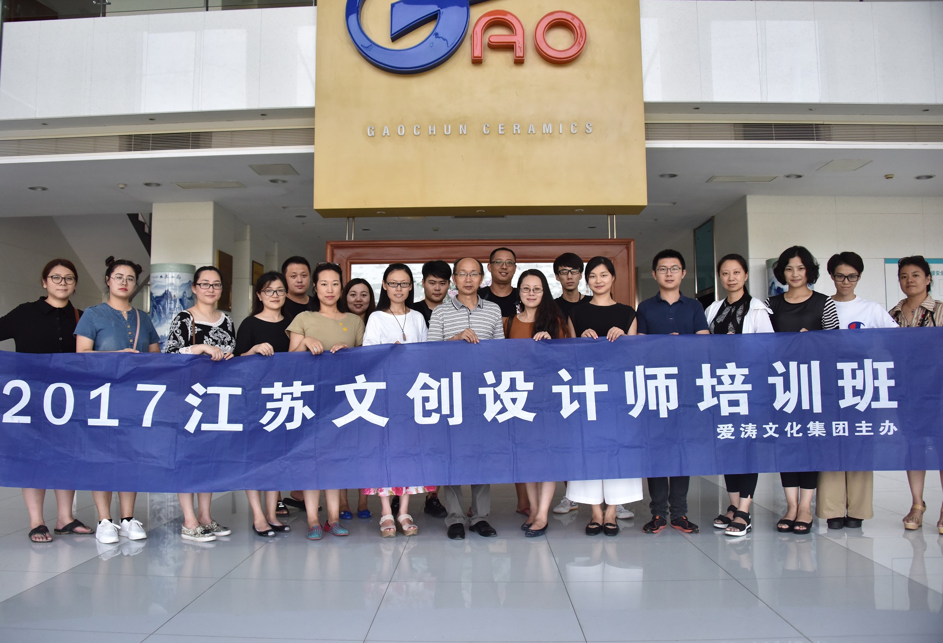 培訓(xùn)班學(xué)員與高淳陶瓷創(chuàng)意設(shè)計(jì)副總監(jiān)蘭亭、APEC國(guó)宴“盛世如意”琺瑯彩餐瓷設(shè)計(jì)師、2017“一帶一路”峰會(huì)“絲路國(guó)宴”系列設(shè)計(jì)師合影